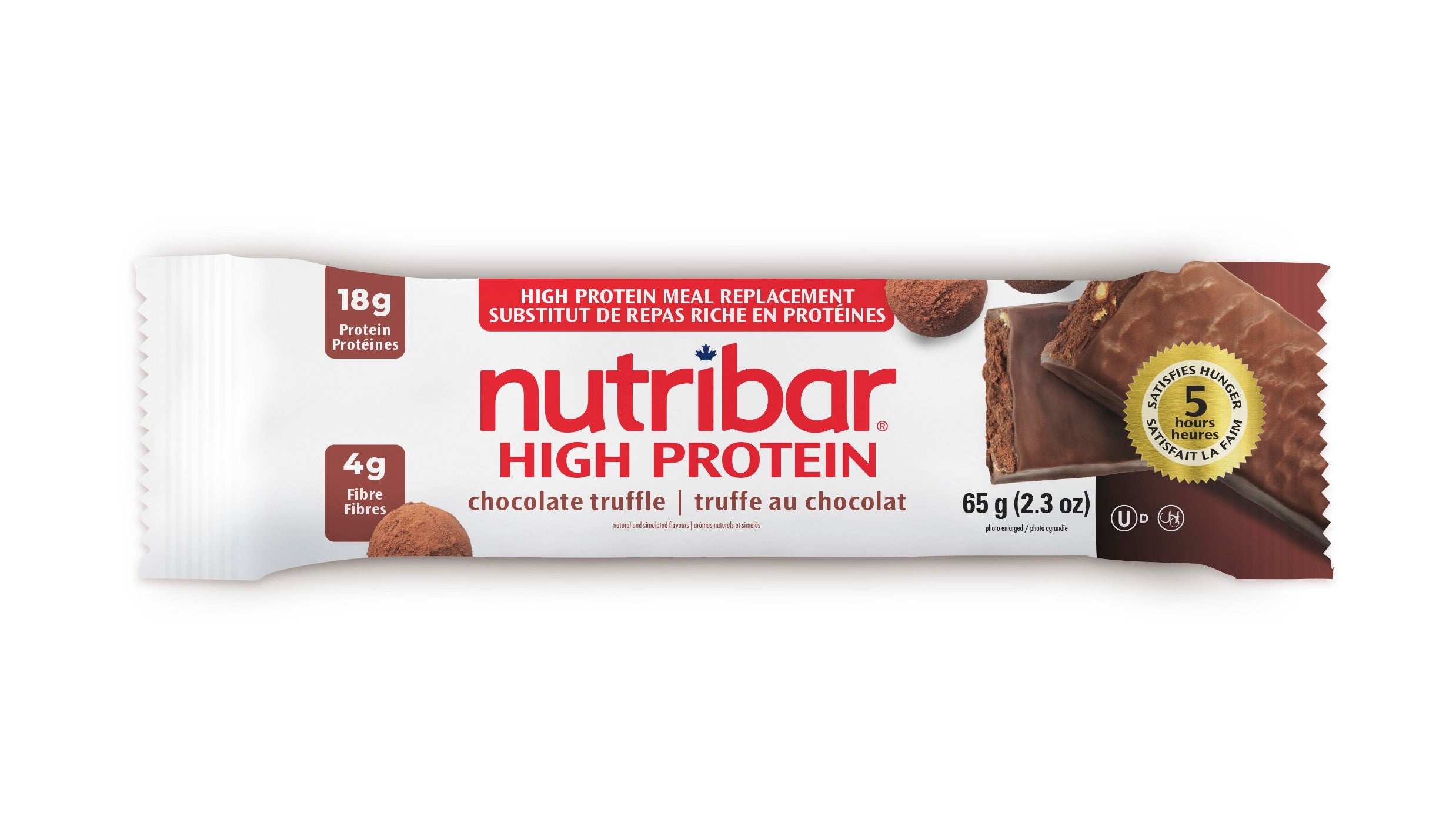Primary ingredients: Protein blend (soy protein isolate, milk proteins), Sugars (glucose-fructose, rice syrup and grape juice blend, honey), Dark chocolate flavoured coating [sugar, modified vegetable oil (palm kernel and/or palm), cocoa powder (cocoa, potassium carbonate), soy lecithin, natural vanilla extract], Maltitol syrup, Cocoa powder, Soy nuggets (soy protein isolate, tapioca starch, salt), Soybean oil, Sorbitol, Soy lecithin, Inulin, Roasted peanuts, Oat fibre, Gum arabic, Natural and artificial flavours, Ground brown flax seed, Salt, Sucralose.